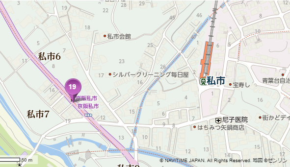 私市駅から京阪バス『京阪私市』19番乗り場までの道のり