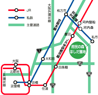 ※土日のみ『私市駅』から『星のブランコ』まで京阪バスが出ていますが、本数が少ないので行く前に時刻表などを確認しておくことをおすすめします。