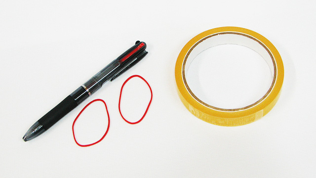輪ゴムは少し太めなら1本で大丈夫ですが、今回はスーパーで買い物をした際などでも付いてくる、どこにでもあるようなごく普通の輪ゴムを使用しています。