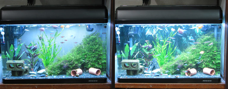 部屋の明かりだけではどうしても水槽内が暗く感じてしまい、見た目も楽しくありません。