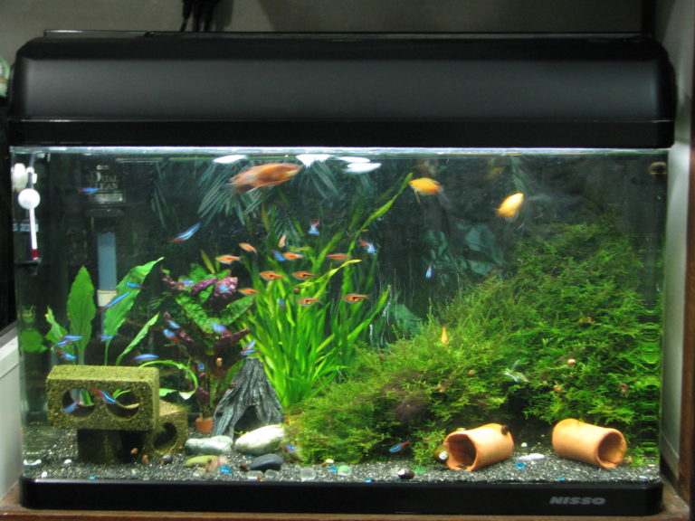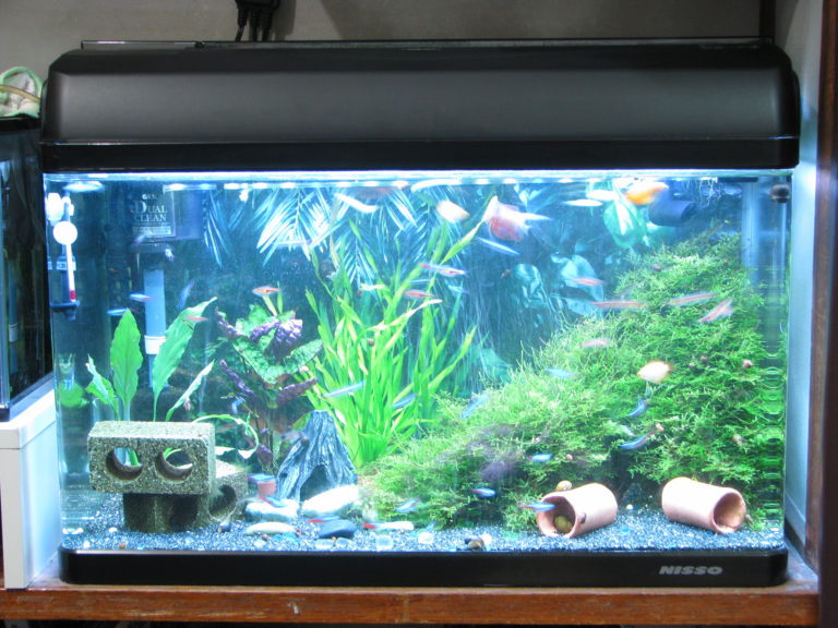 水替えがちょっと大変(30cm水槽と違って水がいっぱいの時に持ち運べない)ですが、ろ過さえきちんとしていれば半年に一度ほどの水替えで何の問題もありません。