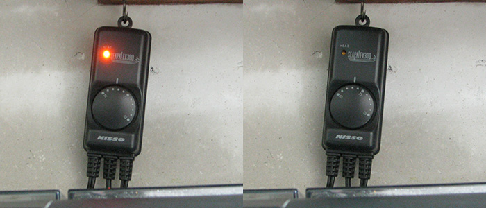 ヒーターだけだと常に26度で電源が入りっぱなしなのですが、サーモスタッドをセットしておけば設定した水温に達した時点で電源が切れ、水温が下がってきたら自動で電源が入るという便利なアイテムです。
