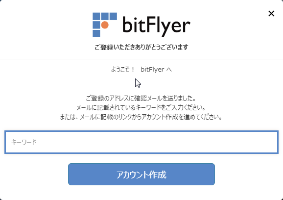 そのメールアドレスに『キーワード』が書かれているので、キーワードを入力後に『アカウント作成』をクリック