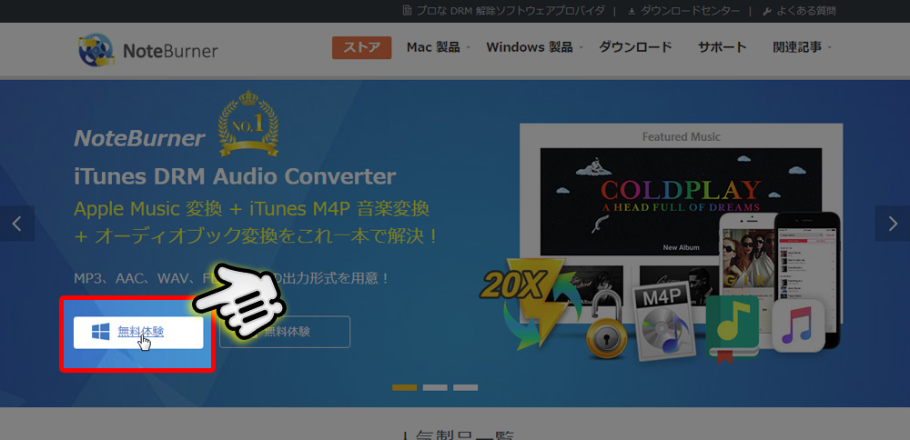 まず公式サイト( www.noteburner.jp )へ移動します。