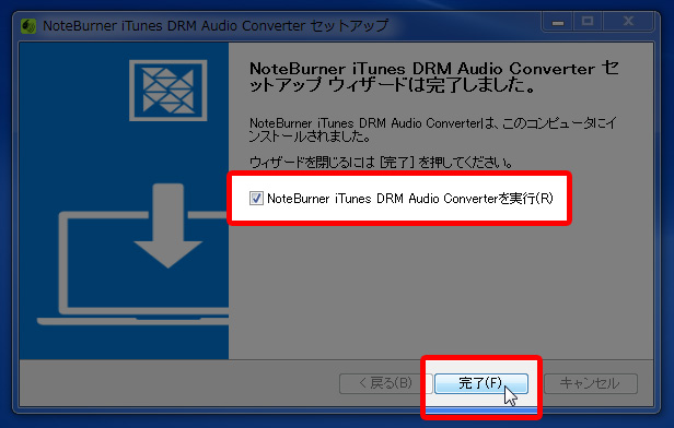 NoteBurner iTunes DRM Audio Converterを実行』にチェックを入れた状態で『完了』をクリックするとソフトが起動します。