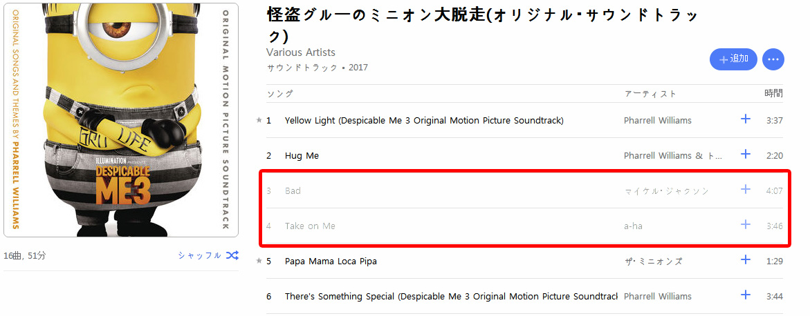 アルバムが開きます。この時、下記トラック3,4のように薄いグレーになっているミュージックはダウンロードできませんのでご注意ください。