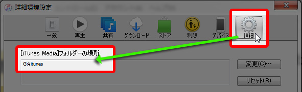 詳細』をクリックすると、[iTunes Mediaフォルダ]の場所が書かれていますので、そちらを参考に『マイコンピュータ』からフォルダを開いて辿っていってください。