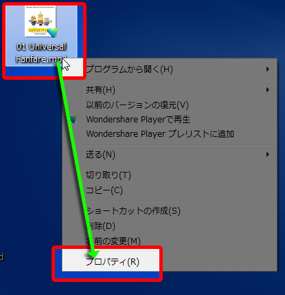 対象ファイルにマウスカーソルを当てて『右クリック』⇒『プロパティ』をクリック。