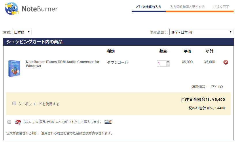 NoteBurner iTunes DRM Audio Converterの購入方法について
