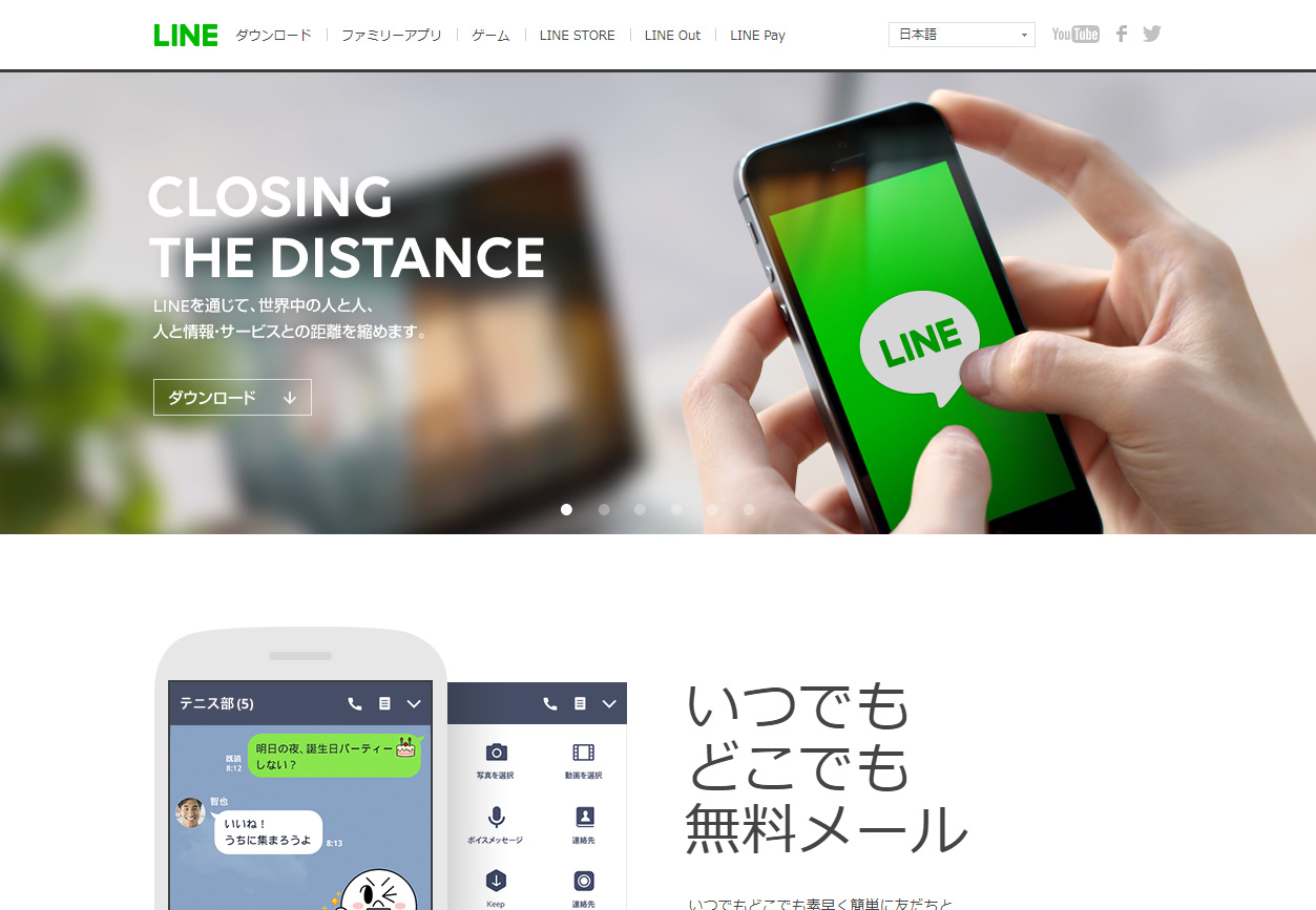 まずは公式サイト(https://line.me/ja/)へいきます。