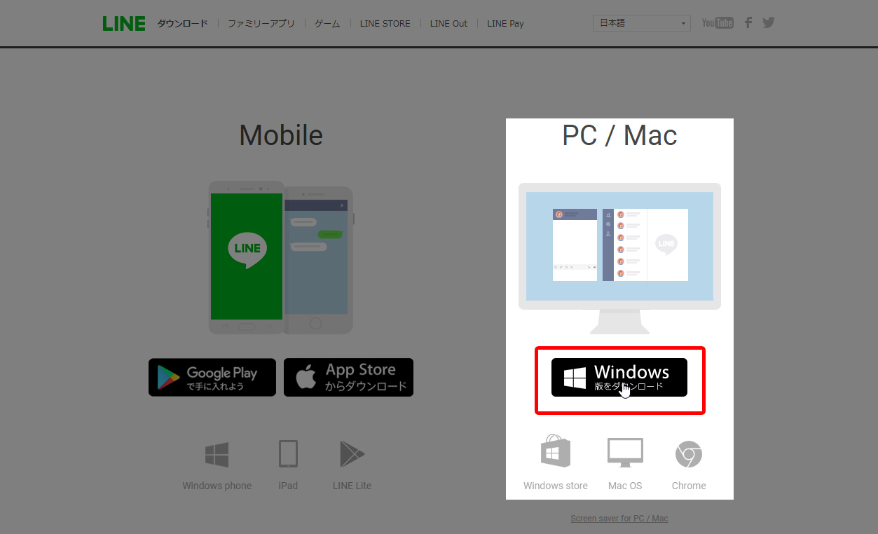 LINE(ライン)のパソコン用アプリをダウンロードする