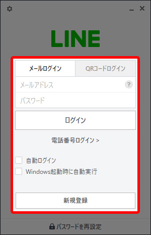 初回起動時は下記のような画面が出てくるので、LINEに登録している『メールアドレス』『パスワード』を使用してログインします。