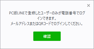 電話番号でのログインは、PC版でLINEに登録したユーザーのみがログインできるらしく、私はiPhoneを使って登録したのでログインできませんでした。