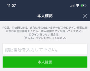 スマホでLINEアプリを開くと、トークなどが表示される前にいきなり『本人確認』の画面が出てきます。