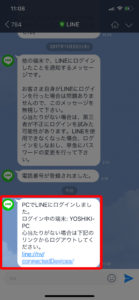 LINEとのトークには『PCからログインがあった』というメッセージが送られますので、もし第三者がパソコンを使ってログインした場合などはすぐに気づくことができるので安心ですね。