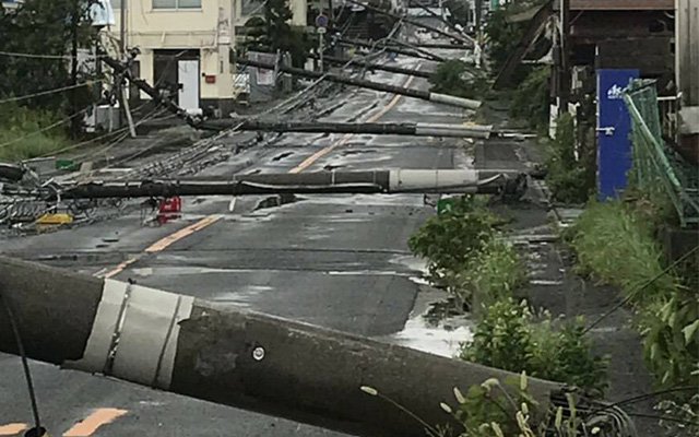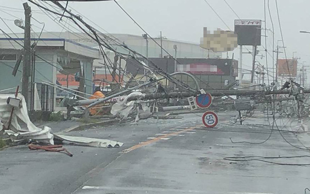 台風21号は電柱をなぎ倒していった・・・