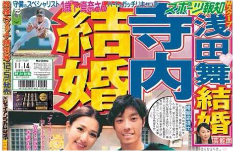 こちらの新聞は以前、婚約が発表?された時のものですが、なんか巨人の寺内選手と浅田舞さんが結婚したようにも見えますよね。