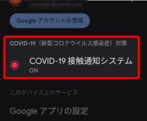「COVID-19 接触通知システム」をタップ