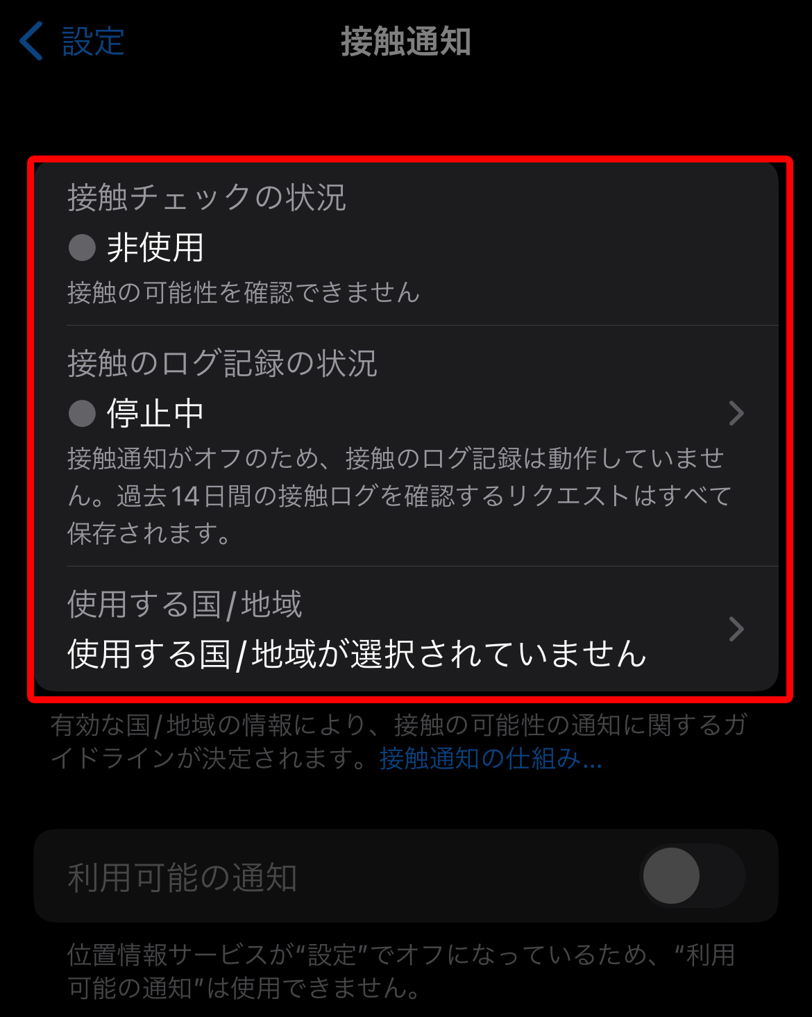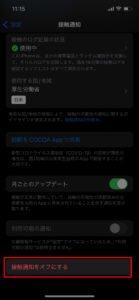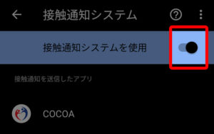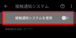 接触通知システムを使用の右にあるレバーをタップ(レバーが右にあればONになっている状態です)