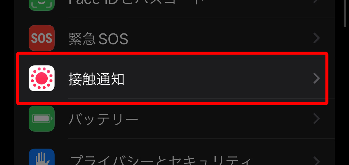 「接触通知」をタップ