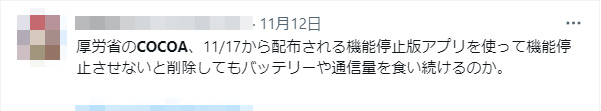 厚労省は2022年12月末までにCOCOAの停止手続きを完了してほしいと呼びかけたうえで、そうでないと上記の処理が続く可能性がある。とも注意を促している。