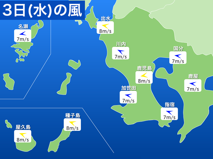 ウェザーニュースによると、3日の水曜日から4日の木曜日にかけては東寄りの風が続くということです。